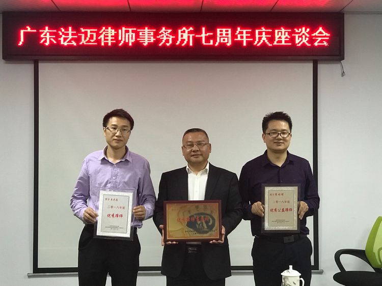 今天是冬至节,对法迈人来说,可谓三喜临门。刚刚,广东法迈律师事务所获得了二零一八年年度优秀律师事务所荣誉称号,同时,我所王大应律师、李鸿博律师分别获得了优秀律师、优秀公益律师的荣誉称号。